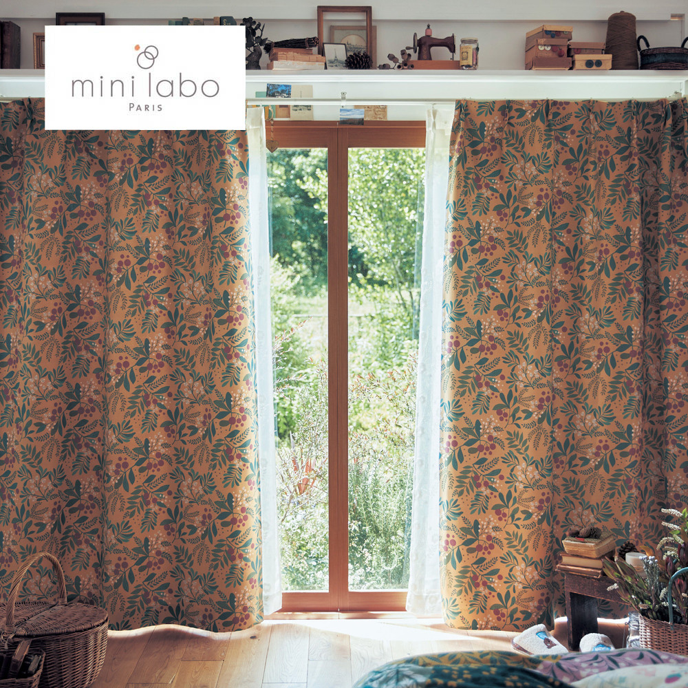 ーデザイン・スタイリングー・豊かな実りの秋を迎えた森の植物たちを、華やかに表現・マスタードカラーのベースに、森の植物を一面にプリントしたデザイン・赤いベリーの実がアクセント・2枚のカーテンを閉じると、まるで森の中にいるよう・裏はくすんだ白の無地・腰高サイズもご用意ー機能ー・遮光・遮熱機能付きの厚地で、冬場は室内の暖気を逃しにくく、夏場は冷気を逃しにくいので一年中お部屋を快適にミニラボパリのデザイナーが生み出す大人かわいい世界「mini labo(ミニラボ)」は、パリで活躍する2人のクリエイター、キャロリーヌとセリーヌによるクリエイションブランド。パリの気分が詰まった、華やかで夢のあるミニラボワールドをつくりあげています。