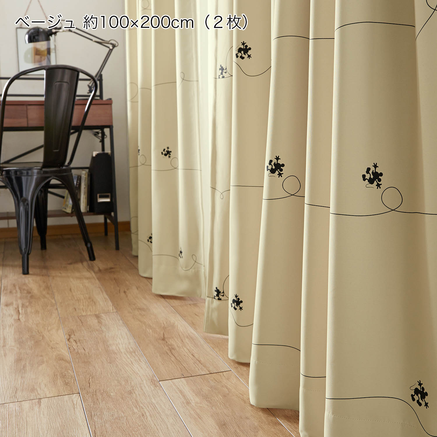 ■【ディズニー/Disney】厚地遮光カーテン・ライン「ミッキーマウス」