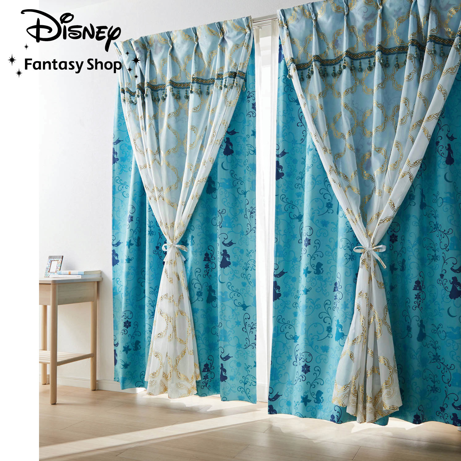 ■【ディズニー/Disney】箔プリントの2重遮光カーテン「ジャスミン」