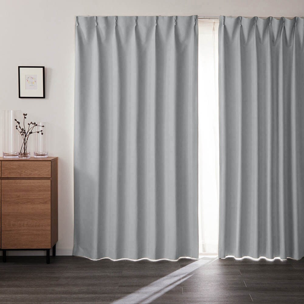 オールシーズン使いやすい、ナチュラルな素材感が魅力のシンプルカーテン寝室で活躍する「遮光機能」、冷暖房効率をあげる「遮熱機能」、さらに「防炎機能」も備えましたまた、綺麗なドレープがキープできる形態安定加工も施して、使い勝手は抜群裾にはウエイトを入れ、シルエットも美しく見せてくれますカラーは6色豊富なサイズ展開から、お選びいただけます【しっかり光を遮る 1級遮光】~室内が真っ暗になり、隣にいる人の顔が識別できないレベル~ 一級遮光カーテンは、寝室を暗くして睡眠をしっかりとりたい方、朝日や強い西日を遮りたい方におすすめです【光を遮る 2級遮光】~室内が暗くなるが、隣の人の顔や表情は識別できるレベル~ 2級遮光カーテンは、室内の様子をわかりにくくしたい方、朝日や強い西日を和らげたい方におすすめです【高層建築物には義務がある 防炎機能】~万が一の時も燃え広がりにくい~ 小さなタバコなどの火でもすぐに燃え広がり大火事になる可能性もあります 防炎カーテンは、消防法で定める基準以上の防炎性能を持ち、万一の時も安心です【年中快適に 遮熱・保温効果】~夏は遮熱、冬は断熱保温効果。冷暖房効率もアップし、節電し省エネ、室内を快適に~ 夏の直射日光熱をカットし、室温の上昇を抑えます 冬は保温、冬の外の冷気をカットし、室温の低下を防ぎます