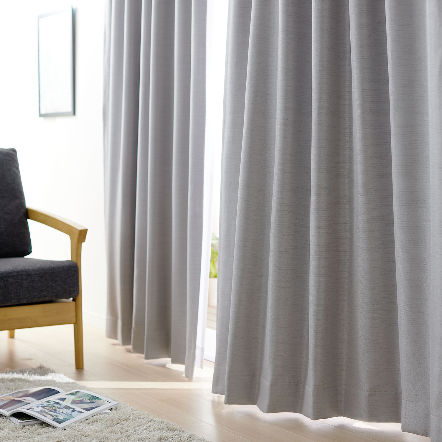 【ポイント1:シンプルだけどおしゃれな雰囲気】 表面にあえて糸を出した綿混生地を使用 さりげなくネップやムラを出して味わいを表現 無地ながら絶妙なニュアンスカラーと生地感が空間に映える 【ポイント2:カーテンに欲しい機能をプラス】 日差しを遮る遮光機能付きで一年中快適 外からの視線が気にならないのも嬉しい 外気の暑い寒いをやわらげる遮熱機能もプラス 【ポイント3:洗濯後もすっきりとしたフォルムをキープ】 洗濯機で手軽に洗えるのもポイント 洗濯後もきれいなドレープを保てる形状記憶加工済み お手入れをラクにして暮らしに配慮 【その他のポイント】 合わせやすいよう豊富なサイズをご用意 お手頃な価格なのでお財布にも優しい 【活躍の場所を問わず幅広いシーンで活躍】 インテリアに馴染みやすくリビングや寝室、子供部屋などにもマッチする汎用性あるデザイン。新居や引っ越しなど家中のカーテンを新しくしたい時にもおすすめです 【光を遮る 2級遮光】~室内が暗くなるが、隣の人の顔や表情は識別できるレベル~ 2級遮光カーテンは、室内の様子をわかりにくくしたい方、朝日や強い西日を和らげたい方におすすめです【年中快適に 遮熱・保温効果】~夏は遮熱、冬は断熱保温効果。冷暖房効率もアップし、節電し省エネ、室内を快適に~ 夏の直射日光熱をカットし、室温の上昇を抑えます 冬は保温、冬の外の冷気をカットし、室温の低下を防ぎます【きれいな見栄え 形状記憶】~美しいドレープが裾まで広がらずきれいにまとまる~ 生産過程で生地をきれいなドレープの形になるように加工しています 未加工品に比べお洗濯