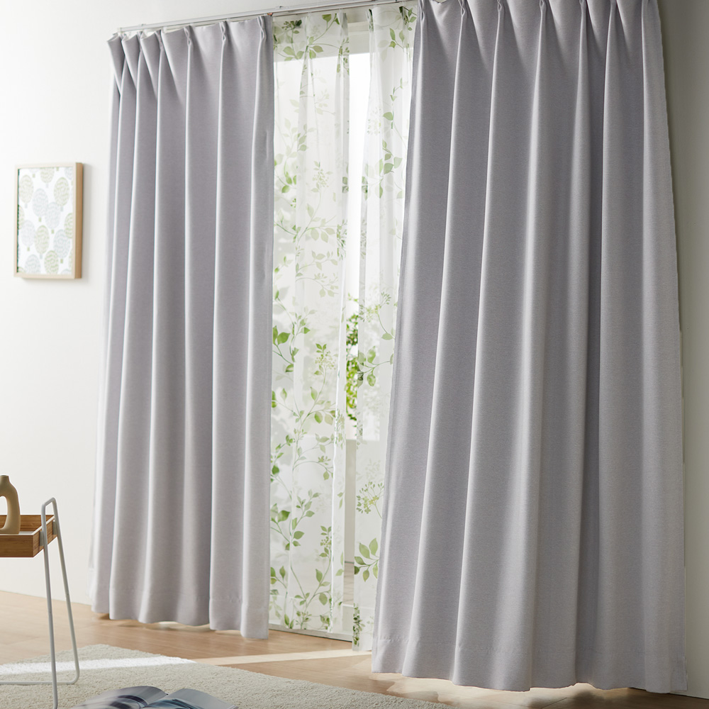 1窓分の厚地カーテン2枚と薄地カーテン2枚、計4枚がセットになったお得な商品4枚セットなので、手軽に模様替えも可能【厚地カーテン】断熱性の高い1級遮光の生地を使用寝室やリビングにもぴったりお部屋に合わせやすい明るいニュアンスカラー【薄地カーテン】フィラメントボイルに3種類のリーフ柄をプリントしたレースカーテンお部屋が明るくなる色合いのリーフ柄デザイン【しっかり光を遮る 1級遮光】~室内が真っ暗になり、隣にいる人の顔が識別できないレベル~1級遮光カーテンは、寝室を暗くして睡眠をしっかりとりたい方、朝日や強い西日を遮りたい方におすすめです【年中快適に 遮熱・保温効果】~夏は遮熱、冬は保温効果。冷暖房効率もアップし、節電し省エネ、室内を快適に~夏の直射日光熱をカットし、室温の上昇を抑えます冬は保温、冬の外の冷気をカットし、室温の低下を防ぎます