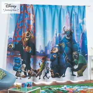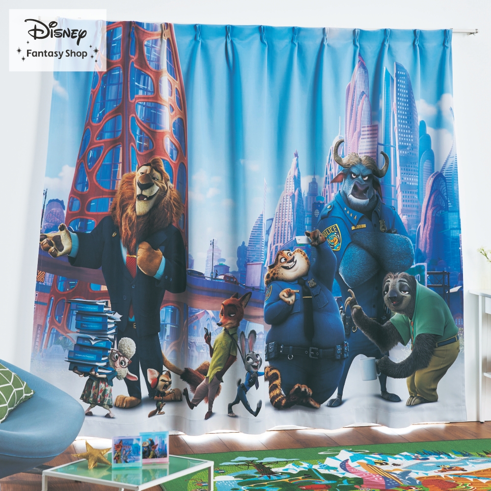■【ディズニー/Disney】まるで映画館のような迫力。一枚仕立ての遮光・遮熱・形状記憶カーテン「ズートピア」