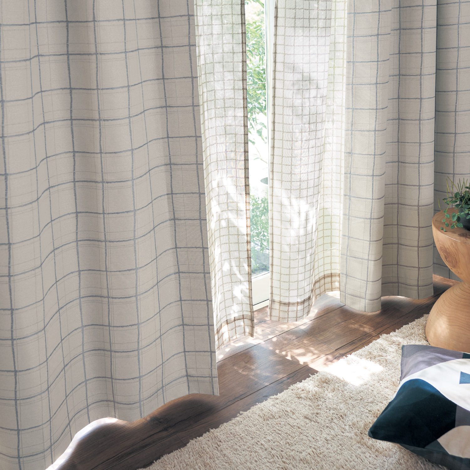 ジャカード織りで手描き風のチェック柄を表現ざっくりとナチュラルな風合いがありながら高級感も併せ持つインテリアにしっくりなじむデザイン裏面はコーティング仕上げで外からの印象すっきり1級遮光・遮熱・防音と多彩な快適機能を備える機能がしっかりありつつ、インテリア性も高いので、お部屋をここちよくやわらかな印象に演出してくれます【しっかり光を遮る 1級遮光】~室内が真っ暗になり、隣にいる人の顔が識別できないレベル~ 一級遮光カーテンは、寝室を暗くして睡眠をしっかりとりたい方、朝日や強い西日を遮りたい方におすすめです【年中快適に 遮熱・保温効果】~夏は遮熱、冬は断熱保温効果。冷暖房効率もアップし、節電し省エネ、室内を快適に~ 夏の直射日光熱をカットし、室温の上昇を抑えます 冬は保温、冬の外の冷気をカットし、室温の低下を防ぎます