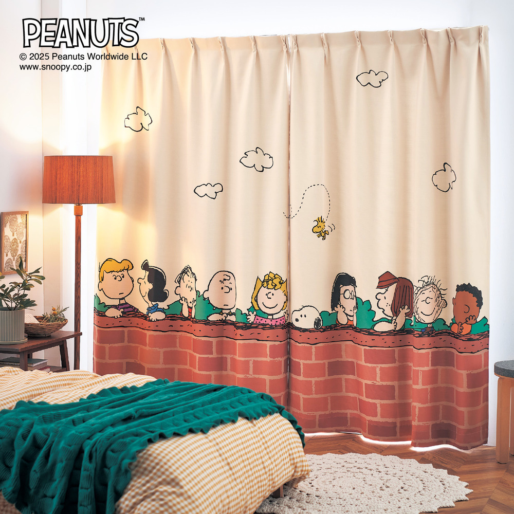 ■【ピーナッツ/PEANUTS】一枚絵のような遮光・遮熱カーテン 「スヌーピー」