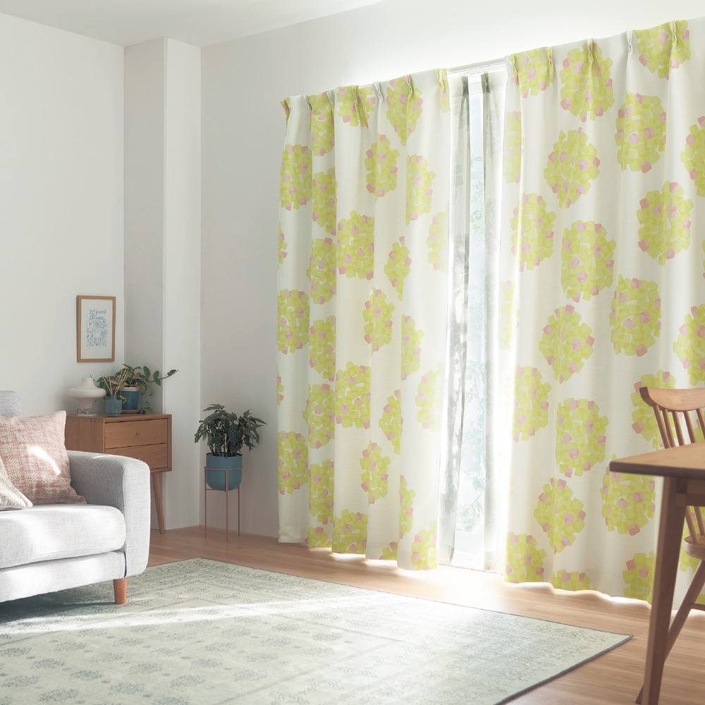 お部屋がぱっと明るくなる水彩画風の植物柄プリント2級遮光の機能付きネットに入れて洗濯機で洗えますカーテンレールが見えるAフック仕様【光を遮る 2級遮光】~室内が暗くなるが、隣の人の顔や表情は識別できるレベル~2級遮光カーテンは、室内の様子をわかりにくくしたい方、朝日や強い西日を和らげたい方におすすめです【きれいな見栄え 形状記憶】~美しいドレープが裾まで広がらずきれいにまとまる~生産過程で生地をきれいなドレープの形になるように加工しています未加工品に比べお洗濯後も吊った時にきれいな見栄えが続きます