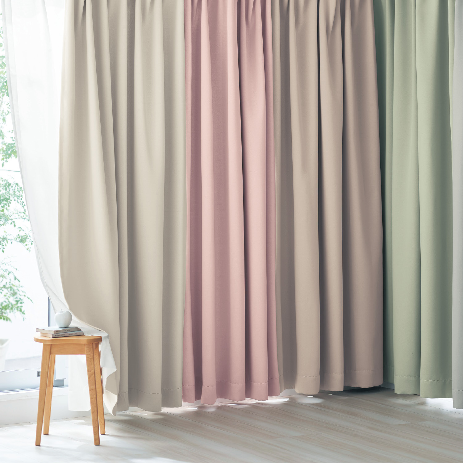 裏面の樹脂加工で外光を完全に遮断します遮熱効果で冷暖房の効率を高めます防音効果で外の騒音を低減します落ち着いた柔らかな雰囲気を作れるニュアンスカラー10色