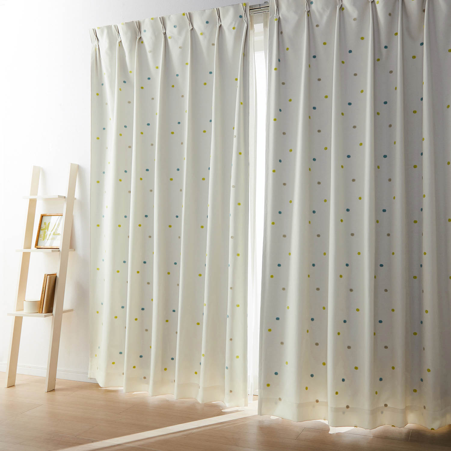 ーデザインー1窓分の厚地カーテンとレースカーテンが揃うお買い得なセット壁や床の色になじみやすい柔らかな色展開厚地カーテンはマットな素材感ナチュラルで優しい印象レースカーテンはしっかりとした生地感ー素材・機能ー厚地カーテンは、遮光・遮熱機能付きレースカーテンは、UVカット、遮熱機能、さらに遮像機能付き