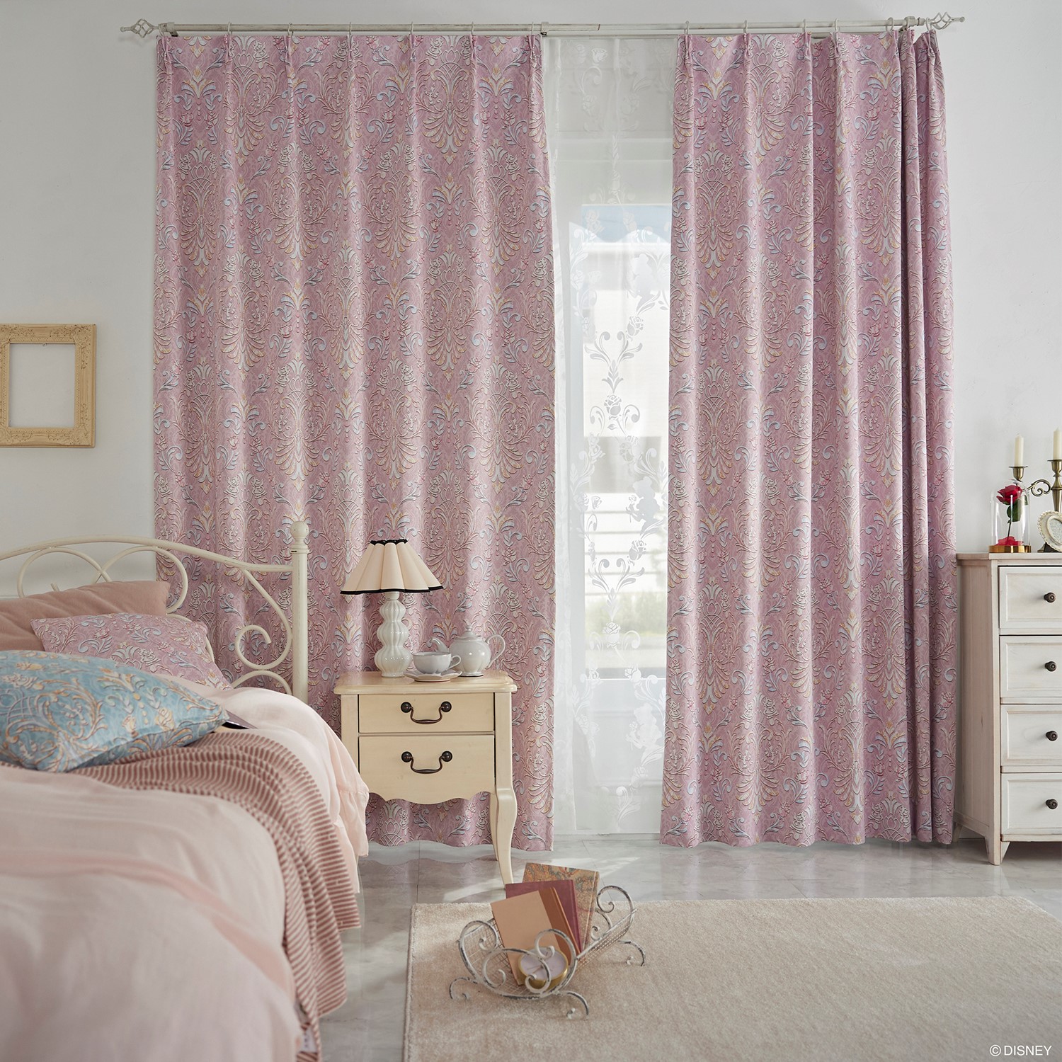 ■【ディズニー/Disney】【58サイズ】厚地遮光カーテン・クラシックビューティー「美女と野獣」