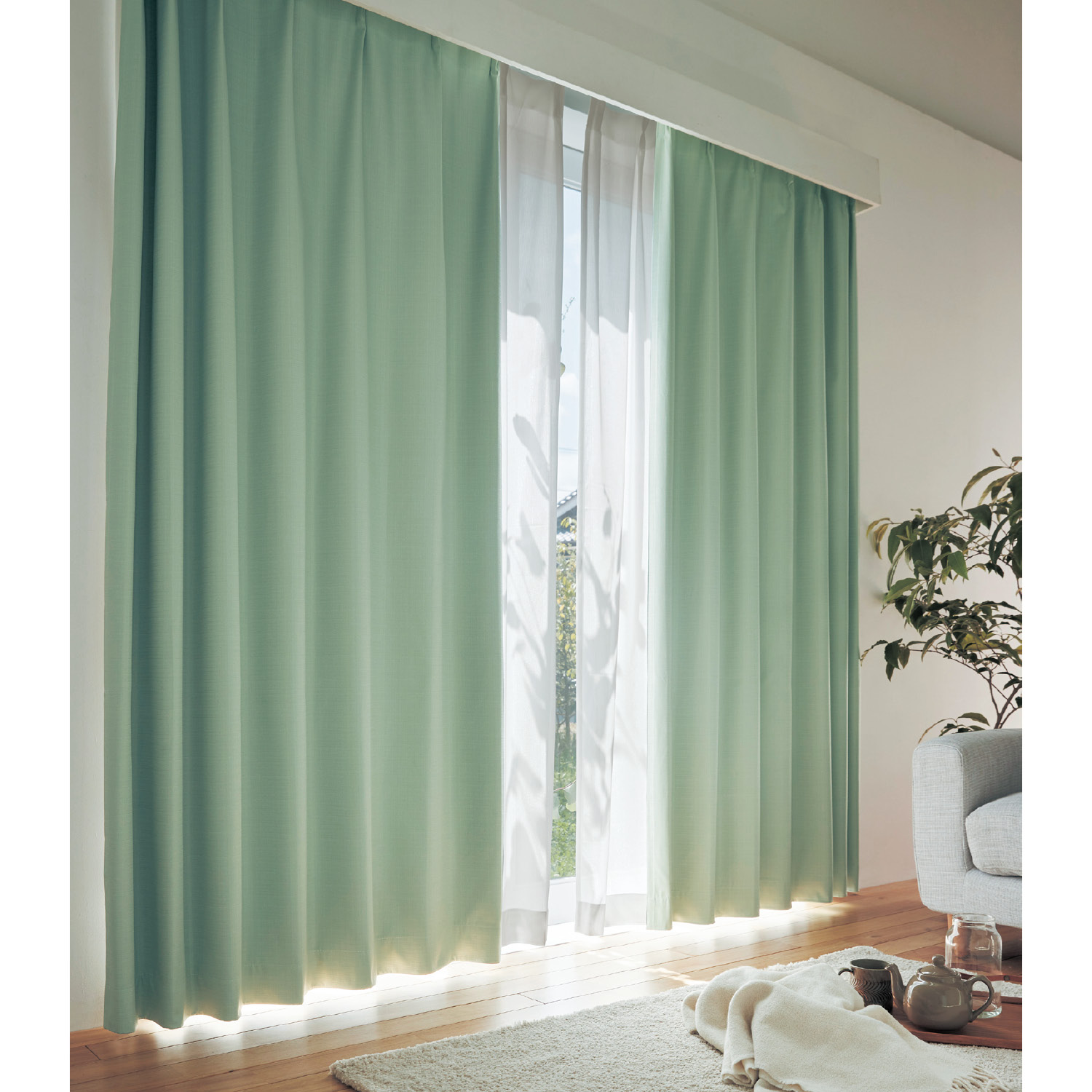 1窓分の厚地カーテン2枚と薄地カーテン2枚、計4枚がセットになったお買い得カーテンセット。(幅約200cmは厚地1枚、薄地1枚の計2枚組となります)厚地にパステルカラーの薄地を合せれば、ちょっと差がつくおしゃれな窓辺に厚地は遮光、防音、形状記憶機能付き薄地は防炎、UV、ミラー機能付きで使い勝手抜群幅広いカラー & サイズから、お部屋にぴったりなものをお選び下さい【しっかり光を遮る 1級遮光】~室内が真っ暗になり、隣にいる人の顔が識別できないレベル~一級遮光カーテンは、寝室を暗くして睡眠をしっかりとりたい方、朝日や強い西日を遮りたい方におすすめです【高層建築物には義務がある 防炎機能】~万が一の時も燃え広がりにくい~小さなタバコなどの火でもすぐに燃え広がり大火事になる可能性もあります防炎カーテンは、消防法で定める基準以上の防炎性能を持ち、万一の時も安心です【きれいな見栄え 形状記憶】~美しいドレープが裾まで広がらずきれいにまとまる~ 生産過程で生地をきれいなドレープの形になるように加工しています 未加工品に比べお洗濯後も吊った時にきれいな見栄えが続きます【明るい昼間、外から見えにくい ミラー機能】~光の反射によりプライバシーを守る~外の光がカーテンに反射することにより、部屋が見えにくくなるミラー機能外が明るい昼間に効果を発揮してくれますお部屋を外から見えない、カーテン生地が透けないようにしたいという声にお応えした機能です※見え方は商品や室内外の光の環境によって変わります【家の中でも UVカット】~素肌だけでなく、家具や床も強い紫外線の日焼けから守ります