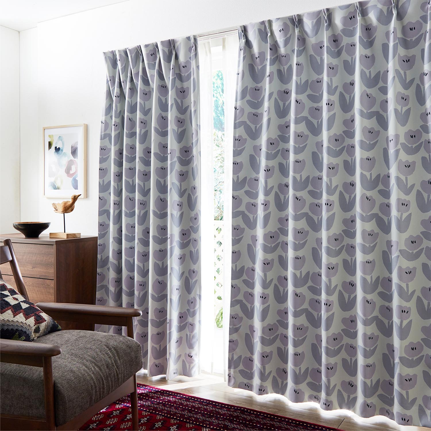 柔らかいタッチで描かれたチューリップが親しみやすい印象を演出日差しを遮る遮光機能付きで一年中快適外からの視線が気にならないのも嬉しい洗濯機で手軽に洗えるのもポイント合わせやすいよう豊富なサイズをご用意【光を遮る 2級遮光】~室内が暗くなるが、隣の人の顔や表情は識別できるレベル~2級遮光カーテンは、室内の様子をわかりにくくしたい方、朝日や強い西日を和らげたい方におすすめです