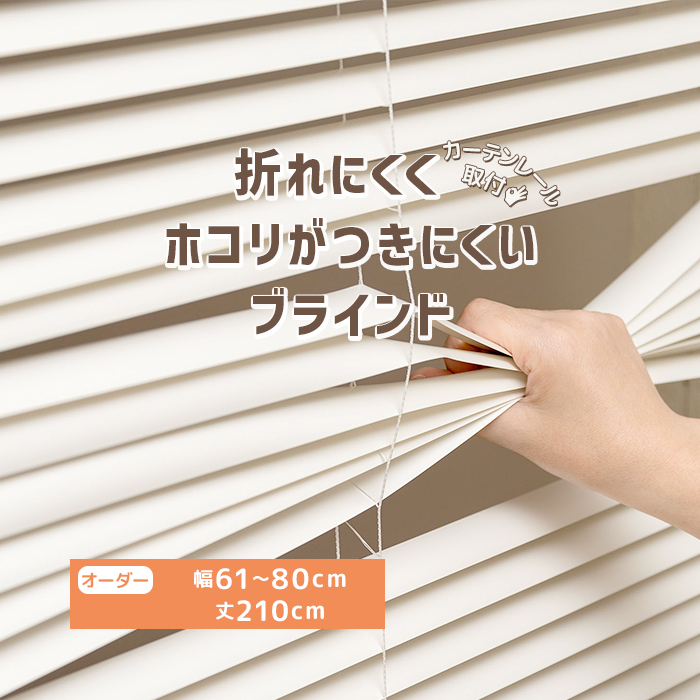 ■ブラインド 賃貸OK カーテンレール取付 軽量 コードレス 幅61〜80cm以内でサイズオーダー×丈210cm フレキシブラインド25 (F) 安全 折れ