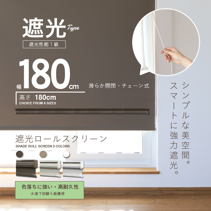 遮光ロールスクリーン 幅180cm [RK-180] ブラインド カーテン ロールスクリーン インテリア 窓 遮光 太陽光 日光 眩しい 無地 シンプル 遮光率99.99% アイボリー ホワイト ブラウン