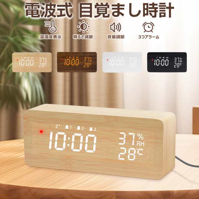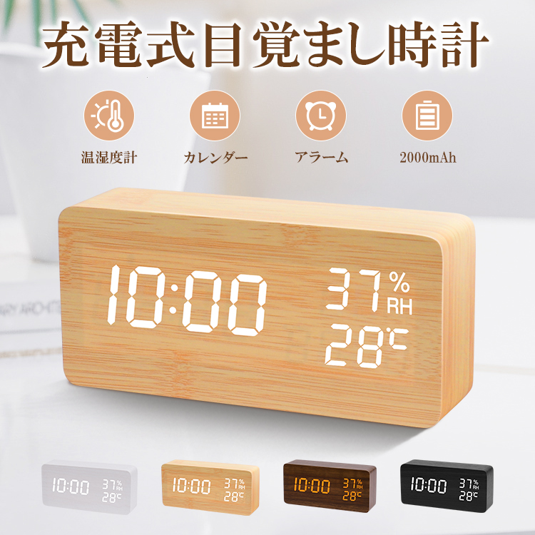木目柄 LED デジタル時計 置時計 置き時計 目覚まし時計 卓上 湿度 温度計 USB アラーム機能 平日アラーム カレンダー 北欧 おしゃれ