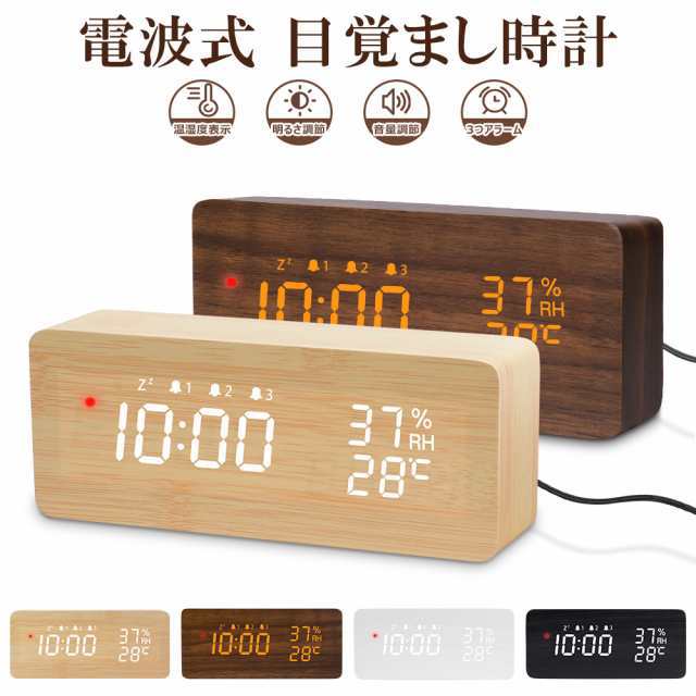 ■【進化版】電波時計 デジタル 置き時計 湿度計 温度計 目覚まし時計 木目調 おしゃれ LED表示 クロック 置時計 大音量 カレンダー アラー
