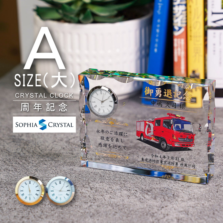 ■クリスタル 時計 DT-16A(大) 置時計 名入れ 名前入り 還暦 古希 米寿 金婚式 銀婚式 退職祝い 結婚祝い オリジナル ギフト プレゼント 両