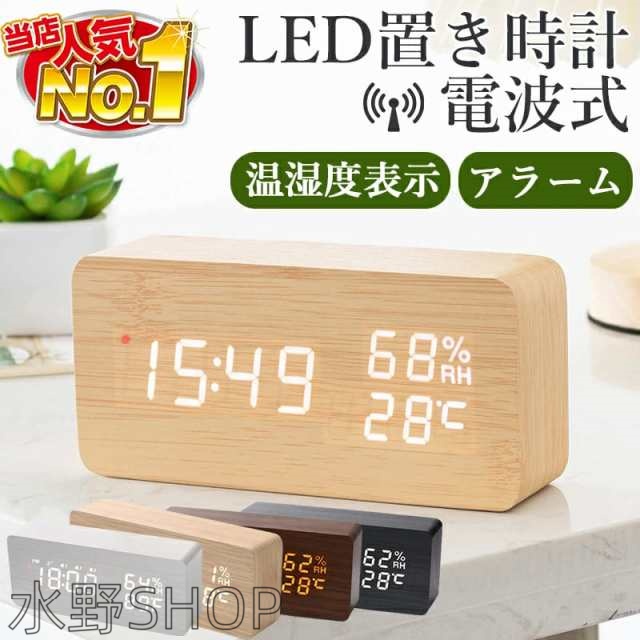 置き時計 電波時計 デジタル 置時計 卓上 おしゃれ 子供 インテリア 時計 温度計 大音量 ライト LED アラームクロック デジタル時計 シンプル リビング かわいい 卓上時計 LED表示 温度 湿度計 日付 寝室 木目調 充電式 ギフト【500円クーポン対象】