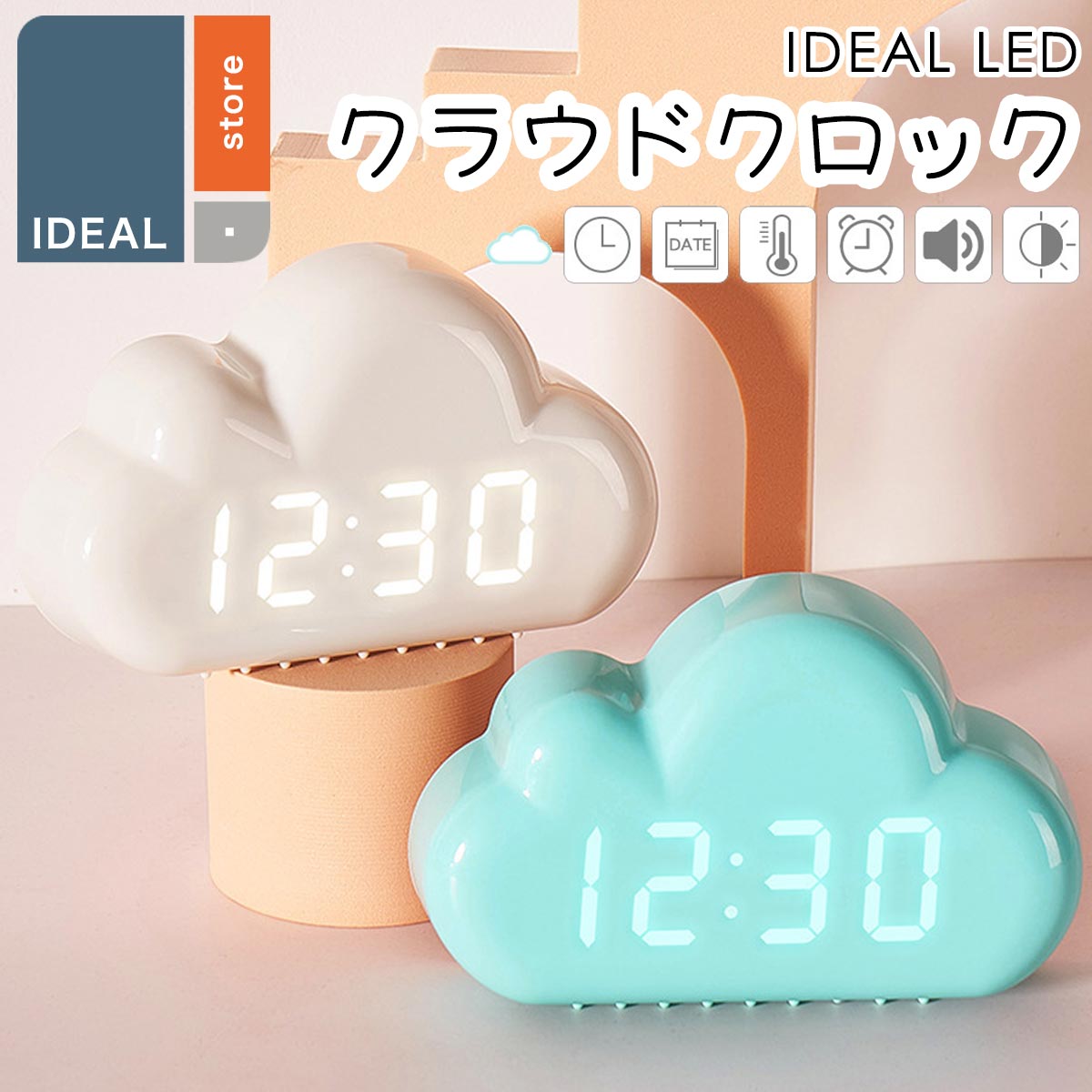 ■置き時計 置時計 めざまし時計 おしゃれ かわいい クラウドクロック LED時計 時計 オブジェ 目覚まし時計 北欧 モダン 子供 置時計 可愛