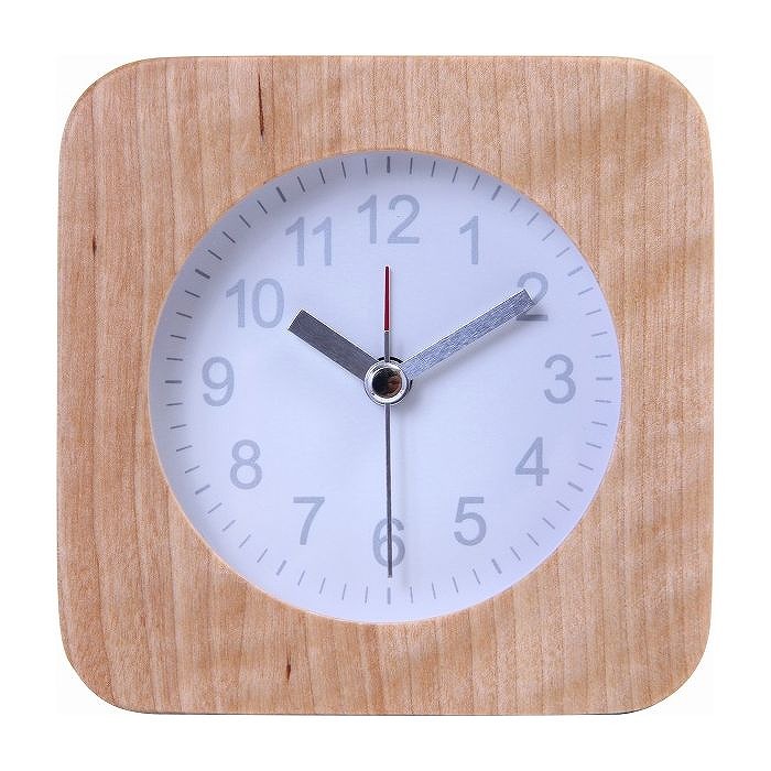 時計の中にランプが内蔵させており、暗いお部屋でも時間を確認することができます。サイドテーブルや机の上などに置くのに丁度良いサイズです。お部屋に合わせやすいシンプルなデザインです。 アラーム機能付きで目覚まし時計にもピッタリです。【本体サイズ】W102×D42×H102mm【重量】0.2kg【材質】天然木【原産国】中国【備考】※電池は別売りです。