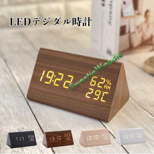 木目柄 LED デジタル時計 置時計 置き時計 目覚まし時計 卓上 湿度 温度計 USB アラーム機能 平日アラーム カレンダー 北欧 おしゃれ