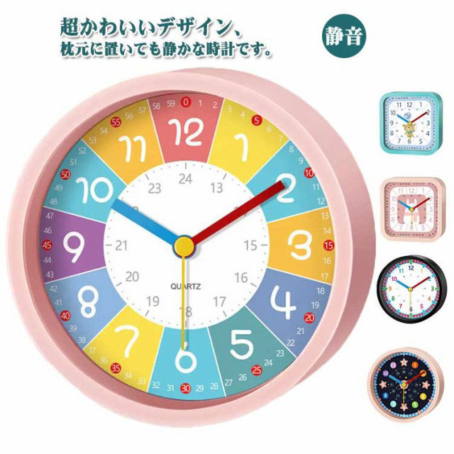 ■目覚まし時計 子供 知育 アラーム めざまし時計 置き時計 アラームクロック スクエア ラウンド 丸型 角型 置時計 静音 起きれる コンパク
