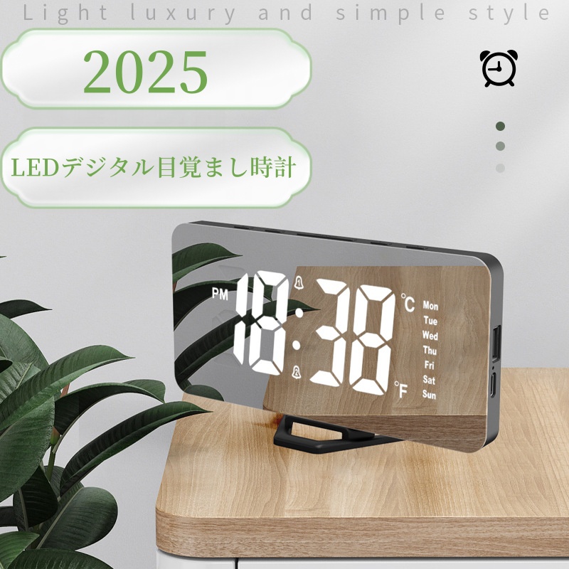 ■置き時計 LED 目覚まし時計 アラーム USB給電 曜日 おしゃれ 置時計 クロック 卓上 デジタル時計 めざまし時計 シンプル 鏡面