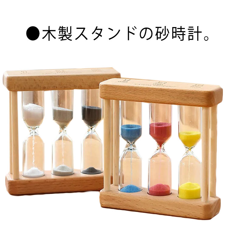 ■3色 砂時計 1分 3分 5分 時計 ウッドフレーム タイマー 時間計測 木 木製 おしゃれ マルチカラー カラフル 置き時計 置時計 料理 勉強 学