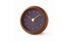 文字盤にスギライト(杉石)を砕いた粉末(岩絵具)を塗りました。スギライトは1943年に日本で初めて発見された鉱物で、日本の岩石学の基礎を築いた学者「杉健一」の名前をとって命名され、日本人名が付いた唯一の宝石です。普通の絵具では出せない透明感のあるやさしい色彩とザラザラした岩絵具特有の質感をお楽しみ下さい。 本体は、漆器の産地として400年以上の歴史を持つ石川県加賀山中の「ろくろ引き」という、回転する木に鉋(カンナ)を当てて形作る方法で製作しました。 素材はケヤキで、木目が美しく、なめらかでしっとりとした質感です。シンプルでありながらも、天然素材や伝統の魅力をお楽しみいただける、オブジェのような置時計です。文字盤は、下地に金沢市二俣町で和紙作りをされている、石川まゆみさんに漉いていただい