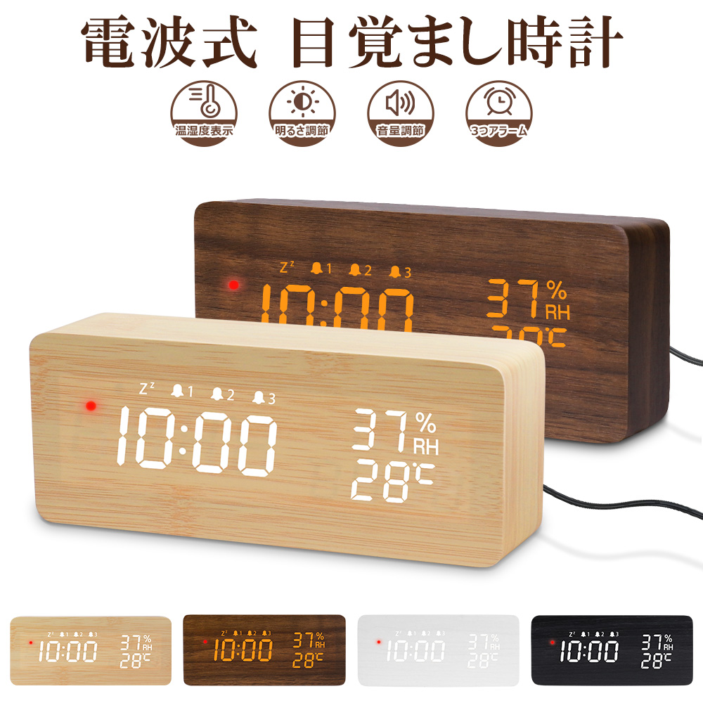 【進化版】電波時計 デジタル 置き時計 湿度計 温度計 目覚まし時計 木目調 おしゃれ LED表示 クロック 置時計 大音量 カレンダー アラーム 木製 ウッド 北欧 アンティーク 卓上 音量調節 明るさ調節 スヌーズ リビング 日本語説明書 子供 女の子 男の子 プレゼント送料無料