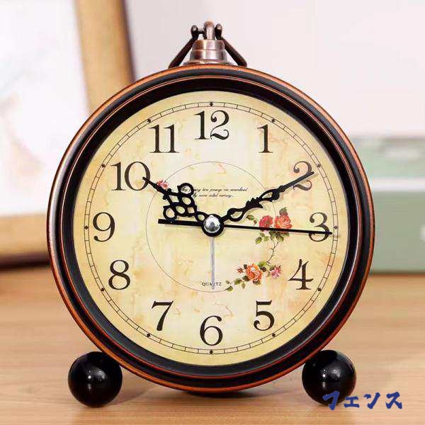 置時計 おしゃれ アナログ 小さい 静音 アンティーク レトロ 置き時計 連続秒針 目覚まし時計 かわいい 電子音 電池式