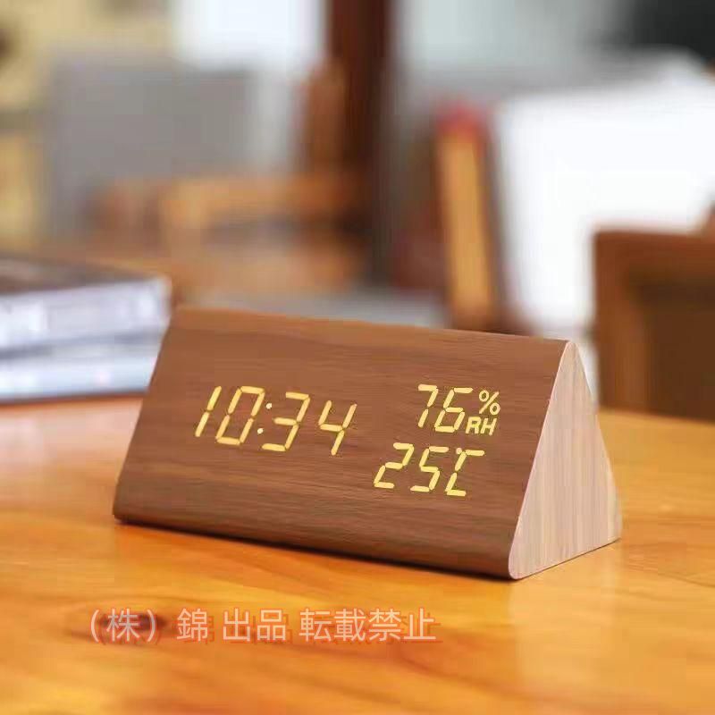 ■デジタル時計 シンプル 木目調 置き時計 三角 ナチュラル 置時計 北欧 時計 おしゃれ 目覚まし時計 かわいい 株式会社錦 インテリア雑貨