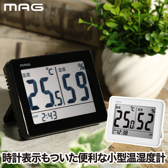 ■温度湿度計 デジタル 置き時計 おしゃれ MAG スカイ デジタルクロック 置時計 温度計 湿度計 置掛両用 時計 見やすい デジタル時計 静か