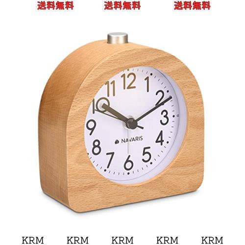 ■Navaris アナログ 木製 目覚まし時計 スヌーズ付き - レトロ 時計 ライト/アラーム/目盛り 付き - 静か ビンテージ 置時計 カチカチ鳴ら