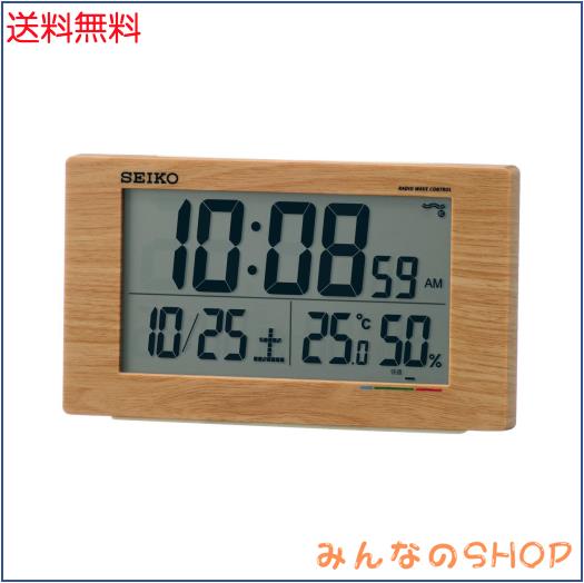 ■セイコークロック 目覚まし時計 置き時計 ナチュラル 電波 デジタル カレンダー 快適度 温度 湿度 表示 薄茶 木目 SQ784A SEIKO