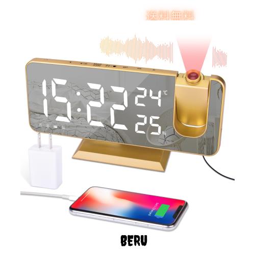 ◆商品名:EVILTO 目覚まし時計 デジタル投影クロック 多機能時計 温湿度計 ACアダプター付 FMラジオ・アラーム・投影・スヌーズ機能付き 携帯充電