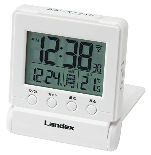 ■ランデックス(Landex) 目覚まし時計 タイムクリック 電波 デジタル 温度 日付表示 トラベルクロック ホワイト YT5266WH