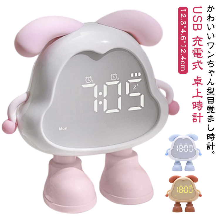 ■クロック 充電式 かわいい 置き時計 カウントダウン 大音量 目覚まし時計 デジタル 卓上時計 子供 入園祝い 入学準備 女の子 ミニ ワンち