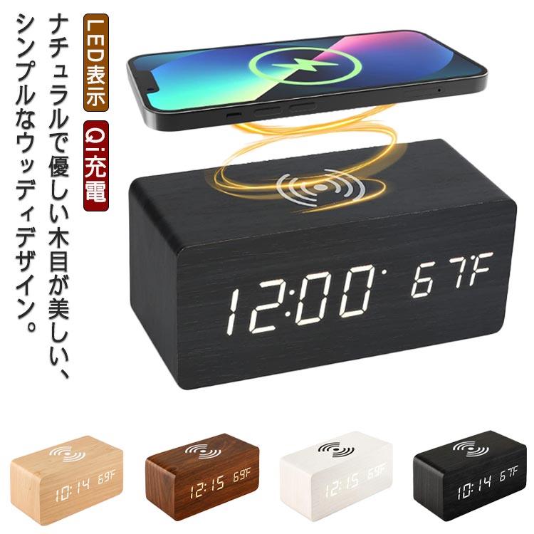 ■冬新作 送料無料 置き時計 USB充電式 デジタル 目覚まし時計 おしゃれ LED表示 クロック 置時計 大音量 温度計 カレンダー アラーム 木製
