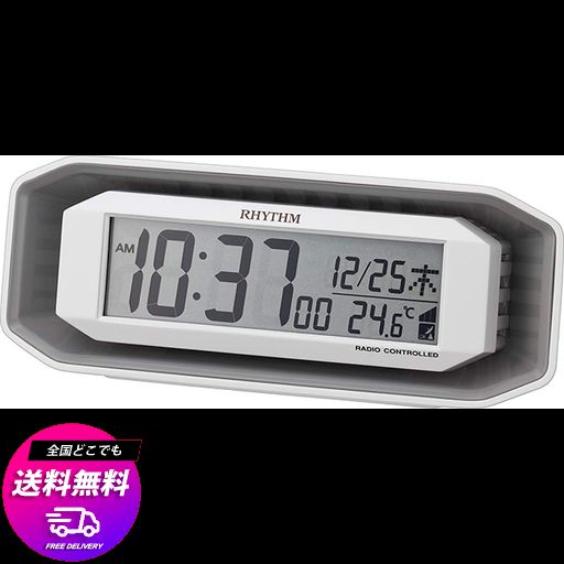 ※他店舗と在庫併用の為、品切れの場合は、ご容赦ください。付属品:専用ACアダプターつき(コード長約1.8m)、バックアップ用電池(CR2032×1)※停電時などに時刻・カレンダー情報の記憶の為に駆動し、電池だけでは表示しません。電波修正機能(40k Hz/60k Hz自動選局・受信OFF機能つき)、電子音アラーム(ダンダントーン)アラームオートストップ機能(約5分間)、スヌーズ、アラームモニター機能表示LED明るさ切替式(2段階)、フルオートカレンダー温度表示(温度測定範囲:0℃〜40℃ 測定精度: ±2℃)、12時間制/24時間制切替