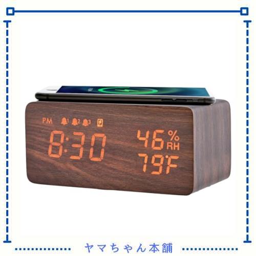 ■目覚まし時計 置き時計 スマホ充電機能 デジタル時計 多機能時計 木目 卓上時計 Qiワイヤレス充電器 スヌーズ 温度/湿度/アラーム 自動輝