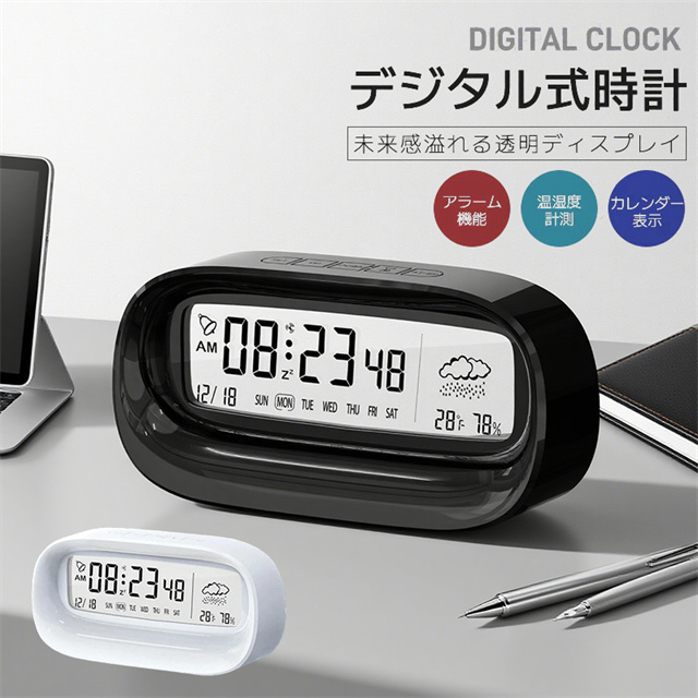 ■送料無料 冬新作 デジタル時計 デジタルカレンダー 時計 置き時計 アラーム 目覚まし時計 温湿度計測 シンプル 透明ディスプレイ 小型 ス
