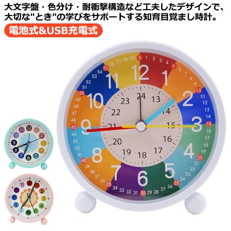 ■子供目覚まし時計 置き時計 知育時計 アラームクロック 目覚まし時計 電池式*USB充電式 子ども 小学生 可愛い 子ども 学習時計 知育目覚