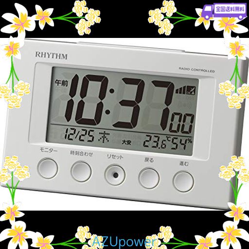 ■【送料無料】リズム(RHYTHM) 目覚まし時計 電波時計 デジタル 温度 湿度 カレンダー ホワイト 12.9X16.9X2.8CM 8R