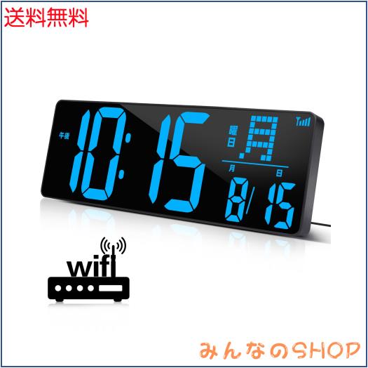 ■「2023最新」Blueekin デジタル時計 LED大画面 WiFi時間自動修正対応 大型 明るさ調整可能 見やすい 壁掛け置き兼用 目覚まし時計 大音量