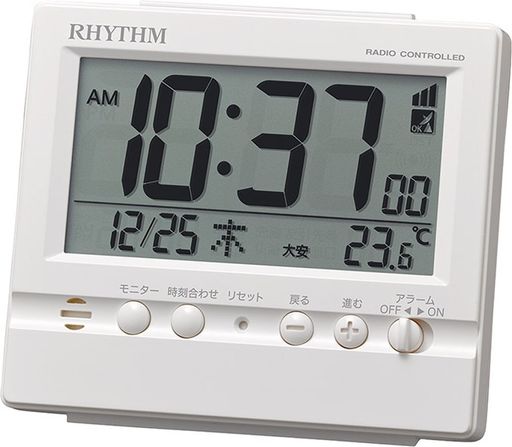 ■リズム(RHYTHM) 電波時計 目覚まし時計 アラーム 温度 カレンダー 白 9.1×10.5×5.2CM 8RZ201SR03