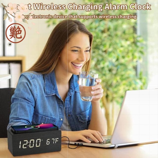 ワイヤレス充電 木製 時計 置き時計 おしゃれ デジタル時計 チャージャー 北欧 デジタル 目覚まし時計 置くだけ 木目調 充電器 表示 ワイヤレス 卓上 ワイヤレス充電 置時計 アラーム ウッド クロック 充電