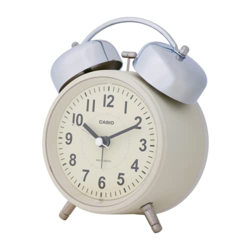 ■CASIO(カシオ) 目覚まし時計 電波 ベージュ アナログ 大音量 ツインベル スヌーズ機能 ライト 付き TQ-720J-7BJF
