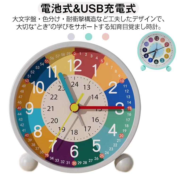 ■学習時計 小学生 子供 目覚まし時計 置き時計 可愛い 電池式/USB充電式 子供用 学習用 子ども 子ども 知育 知育目覚まし時計 アラームク
