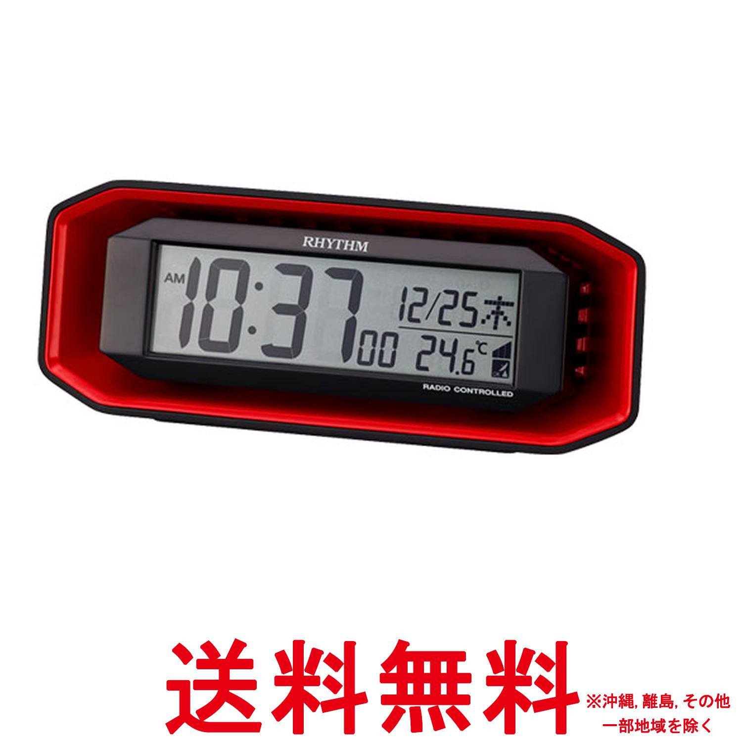 ■リズム 電波時計 目覚まし時計 大音量 電子音 アラーム デジタル レッド 7.2x18.3x6.4cm 8RZ220SR01