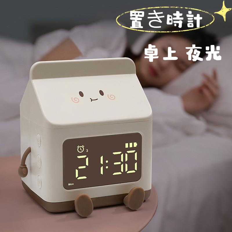 目覚まし時計 光 おしゃれ 子供 デジタル 置き時計 かわいい 光る アラーム USB 授乳ライト 充電 調光 コンセント